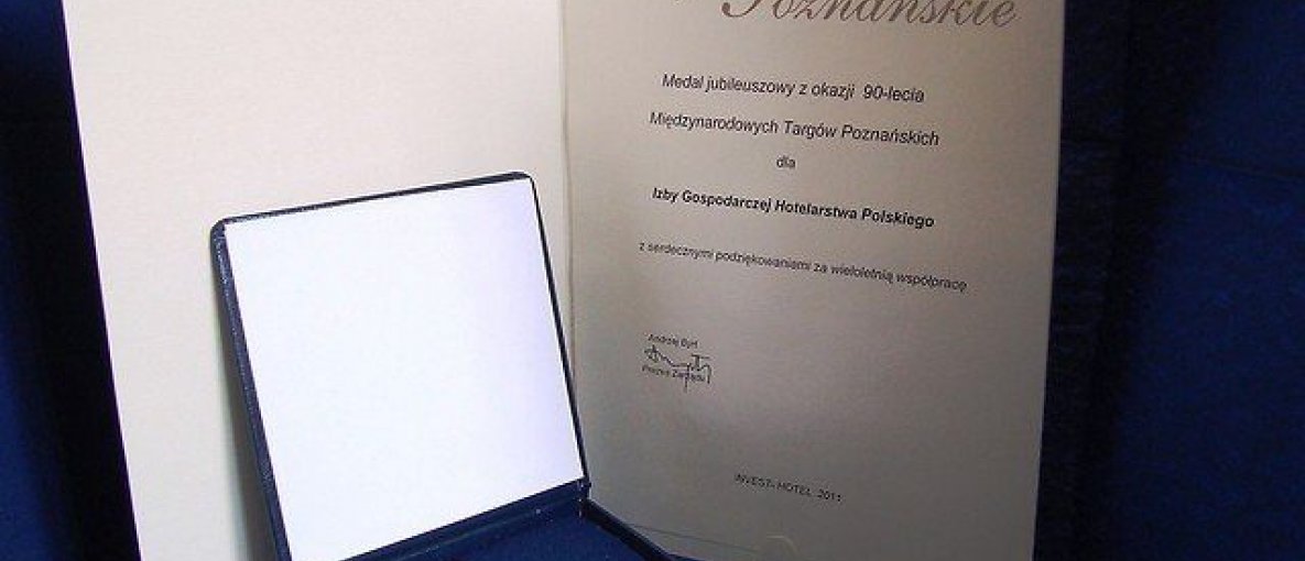 W imieniu Prezesa oraz Rady Izby Gospodarczej Hotelarstwa Polskiego ponownie składamy podziękowanie Zarządowi MTP Sp. z o.o. za przyznany nam Medal za dotychczasową współpracę.