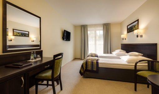 Zapraszamy Państwa do stylowo urządzonych pokoi, w których nasi Goście mogą w pełni wypocząć od otaczającego ich, na co dzień zgiełku.