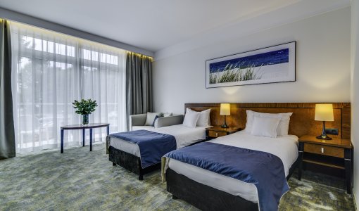 Na terenie hotelu, znajduje się dwupoziomowy Aquapark. W skład kompleksu wchodzi basen rekreacyjny ze zjeżdżalnią, sztuczną rzeką oraz brodzikiem dla dzieci oraz 4 torowy basen sportowy. Jako jedyni na Pomorzu posiadamy termalny basen solankowy wraz z basenem zewnętrznym o wyjątkowych właściwościach leczniczych. W strefie wellness, Goście mogą korzystać z jacuzzi oraz Centrum saun i łaźń.