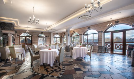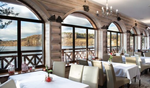 To miejsce, w którym łączą się najlepsze smaki i zapachy z regionalną kuchnią. Nasz resort położony jest nad samym brzegiem malowniczego jeziora Raduńskiego. Restauracja z widokiem na jezioro pozwala cieszyć się bajecznymi pejzażami, a taras restauracji to idealne miejsce na relaks, słoneczną kąpiel, czy wieczorny kieliszek wina pod gołym niebem. Tak atrakcyjna lokalizacja czyni restaurację wyjątkowym miejscem na mapie regionu.