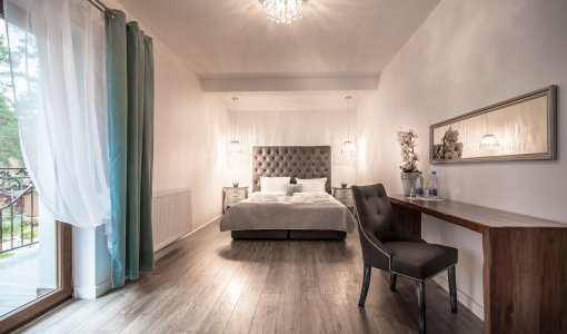 Apartamenty z widokiem na jezioro i pokoje urządzone w nowoczesnej stylizacji harmonizującej z naturą, zaprojektowane z myślą o zapewnieniu dobrego samopoczucia i komfortu naszym gościom. Nasz standard to: wygodne łóżka, nowoczesna łazienka i widok na otaczającą przyrodę.