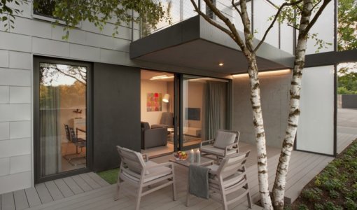 Apartamenty typu Junior Suite i Chillout Superior - niezwykle funkcjonalne i kameralne apartamenty nad samym morzem o powierzchni około 40 metrów kwadratowych z wejściem bezpośrednio z parteru. Na ich wnętrze składa się sypialnia z łożem dla dwóch osób dorosłych, łazienka z prysznicem oraz bogato wyposażona część dzienna z aneksem kuchennym. Znajdujące się w salonie sofy rozkładają się do wymiarów wygodnych łóżek, z których mogą skorzystać dwie osoby dorosłe lub dwoje dzieci, są to zatem kameralne apartamenty rodzinne. Do apartamentów przylegają przestronne tarasy z zestawem wypoczynkowym.