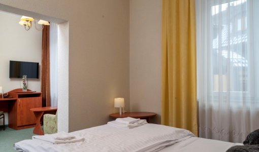 Pokoje wyposażone są w TV, bezprzewodowe łącze internetowe Wi-Fi. W każdym pokoju jest łazienka z prysznicem. Żelazko i suszarka do włosów do wypożyczenia w recepcji.