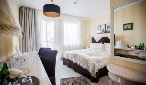 Posiadamy również pokój rodzinny oraz pokoje o podwyższonym standardzie typu de Luxe i Apartament. Oprócz klasycznych pokoi dwuosobowych, można zdecydować się na wariant Twin ( z dwoma pojedynczymi łóżkami ). Większość pokoi z balkonem.