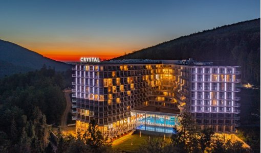 Pięciogwiazdkowy Crystal Mountain stanowi oryginalne połączenie nowoczesnego designu z wpisaniem architektonicznej bryły w górski krajobraz. Zbudowany na zboczu Góry Bukowej, mimo ultranowoczesnej architektury, buduje dialog z modernistycznym dziedzictwem Beskidów.