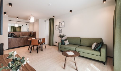 Apartamenty Sowa zlokalizowane są w samym sercu Bydgoszczy, nieopodal Starego Miasta. Blisko stąd także do najciekawszych zabytków miasta, bulwarów nad Brdą czy lokali gastronomicznych przy ul. Jatki. Obiekt składa się z jasnych, cichych i przestronnych apartamentów z dużymi oknami, z których podziwiać można okolicę miasta. W środku każdego z eleganckich apartamentów na gości czekają: sypialnia, część wypoczynkowa z aneksem kuchennym i jadalnią oraz łazienka. Przy aranżacji przytulnych i funkcjonalnych wnętrz zadbaliśmy o najdrobniejsze detale, które dają poczucie luksusowego wypoczynku i wytchnienia od miejskiego zgiełku w samym centrum Bydgoszczy.