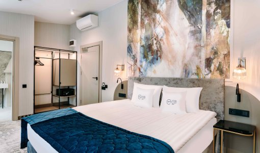 Hotel **** ETER zlokalizowany jest na cichym uboczu pięknej toruńskiej starówki, pozwala na wytchnienie od zgiełku miasta. Jest to budynek zabytkowy, poddany rewitalizacji. Leży w sąsiedztwie perły gotyckiej architektury - Bazyliki św. Jakuba, na polskim szlaku Camino de Santiago (szlak św. Jakuba). Jedną z części hotelu stanowi zabytkowy budynek, datowany na 2. połowę XIII wieku, który niegdyś pełnił funkcję jednego z najstarszych toruńskich szpitali - Szpitala św. Jakuba. Właśnie tam zadbano o to, aby goście mogli poczuć klimat dawnych lat. Odtworzono charakter zabytkowego miejsca poprzez konserwację drewnianych i ceglanych elementów oraz pozostawiono oryginalne skrzynkowe okna. Druga, nowoczesna część hotelu to przeciwwaga dla historycznej przestrzeni. Jasne, słoneczne pokoje utrzymane są w nowoczesnym stylu. Wysoka estetyka urządzonych wnętrz, obcowanie ze sztuką (obrazy, rzeźby, zachowane i wyeksponowane zabytkowe konstrukcje) mają sprawić, by Goście nie tylko odpoczęli, ale także zaciekawili się tym miejscem i zainspirowali. O solidną dawkę sztuki w pokojach zadbali: polski akwarelista Krzysztof Ludwin poprzez wyeksponowanie swoich aktów w zabytkowej części, malarka Katarzyna Wasilewska ze swoją kolekcją "Eter życia"; w nowej części budynku oraz Laura Szymoniuk z drucianymi rzeźbami "ETERyczne".