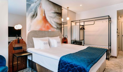 Dodatkowo przed hotelem znajduje się kilka miejsc postojowych dla Gości, którzy potrzebują wygodnie wypakować bagaż. W bliskiej odległości znajdują się zarówno parking (100 m od obiektu), postój taksówek oraz dworce - autobusowy i kolejowy.