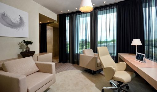 Jest to najwyższy standard pokoju w naszym obiekcie, charakteryzuje się on podziałem na pokój dzienny oraz cześć sypialną. Dzięki temu rozwiązaniu w części dziennej możesz spokoje oddać się codziennym obowiązkom, natomiast w części nocnej zregenerować swe siły po wymagającym dniu. Jesteśmy świadomi jak ważnym aspektem w życiu człowieka jest równowaga pomiędzy pracą a odpoczynkiem. Pisząc o relaksie warto wspomnieć, iż na wyposażeniu pokoju znajduje się wanna, jest to jedyny typ pokoju, który je oferuje.