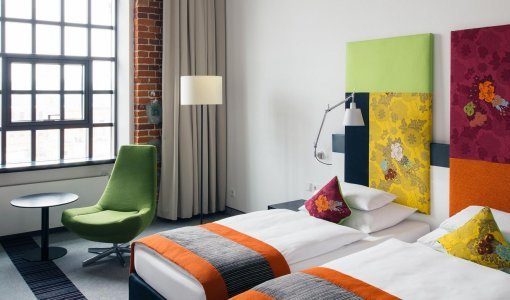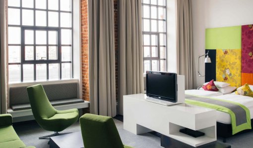 Vienna House by Wyndham Andel’s Lodz robi wrażenie pod każdym względem – wyróżnia się zabytkową fasadą z czerwonej cegły oraz doskonałą lokalizacją. Obiekt mieści się w budynku dawnego zakładu tkackiego na terenie Manufaktury, największego w mieście centrum handlowo-usługowo-rozrywkowego. Unikalną architekturę hotelu cechuje umiejętne połączenie kolorów i formy, designu i materiałów, ciepła i gościnności.