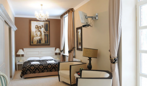 Zabytkowy obiekt noclegowy o charakterze pensjonatu, wybudowany na przełomie XIX i XX w. Swoimi wnętrzami i wystrojem nawiązuje do tradycji pobytu carskiej rodziny Romanowów w Spale.