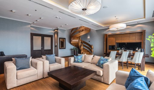 Dodatkowe udogodnienia to heliport i lądowisko dla samolotów. Teren zewnętrzny kompleksu to aż 240 ha.