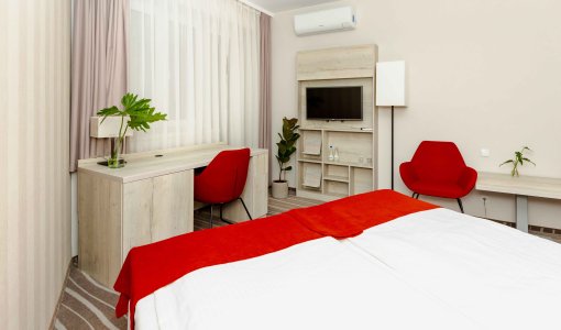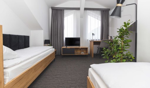 Jesteśmy obiektem o standardzie hotelu 3 gwiazdkowego. Hotel zlokalizowany jest w odległości 3 kilometrów od drogi ekspresowej S5 (Poznań – Wrocław) i 1 km od dworca kolejowego. Budynek hotelu znajduje się w bezpośrednim sąsiedztwie nowoczesnej hali tenisowe(30 m) j oraz aquaparku -poprzez łacznik ( będącego w trakcie prac remontowych). Spacer do centrum miasta zajmuje ok. 15 minut, rowerem 5 min .  Do hotelu przynależy parking dozorowany mogący pomieścić 55 samochodów, a także ogólnodostępny  parking dla autokarów i samochodów osobowych.