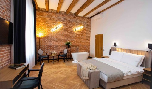 Nasz hotel to zabytkowa kamienica, która została wybudowana w obrębie murów siedemnastowiecznego kościoła św. Scholastyki. W połowie dziewiętnastego wieku utworzono tam szkołę dla chłopców. Obecnie miejsce to to butikowy historyczny hotel, którego nazwa nawiązuje do mieszczącego się nieopodal wspaniałego teatru miejskiego imieniem Juliusza Słowackiego.
