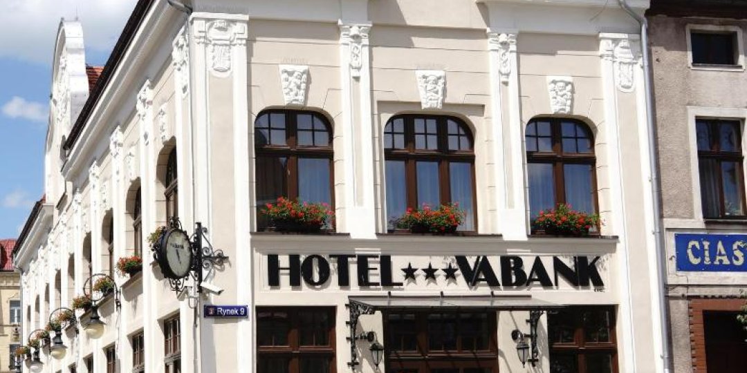 Hotelowe nawiązanie do filmu „Vabank” nie jest przypadkowe. W kamienicy odrestaurowanej przez obecnych właścicieli mieściła się bowiem siedziba Narodowego Banku Polskiego. Aby podkreślić dawną funkcję w piwnicy umieszczono zabytkowe wrota do Skarbca. Znajduję się tam również klimatyczna sala bilardowa dostępna dla Gości bezpłatnie. Całości dopełnia całodobowa recepcja z wykwalifikowaną obsługą, która z uśmiechem podaje kawę, drinki i służy pomocą.