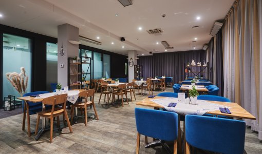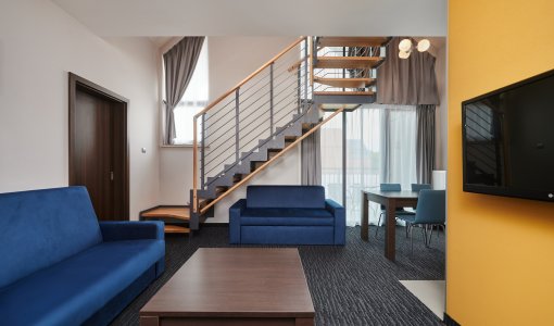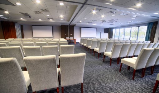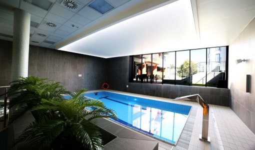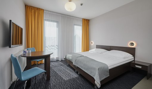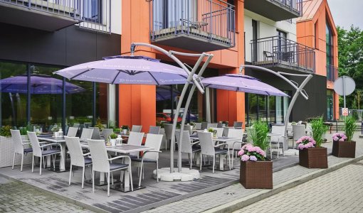 Goście mogą korzystać z 195 przestronnych pokoi i apartamentów, restauracji, baru, nowoczesnego centrum konferencyjnego oraz rozbudowanej strefy wellness z basenem, jacuzzi, saunami i brodzikiem dla dzieci. Dodatkowym udogodnieniem jest parking przy samym obiekcie.
