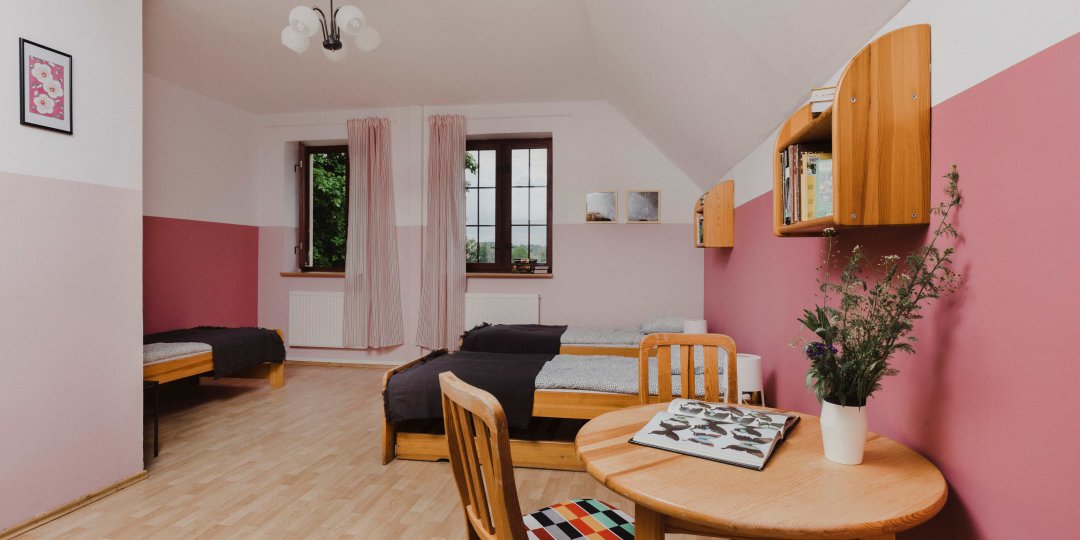 Na gości czekają wygodne i funkcjonalne pokoje, idealne zarówno dla rodzin, grup szkolnych, jak i uczestników wydarzeń czy warsztatów. To doskonała baza noclegowa sprzyjająca odpoczynkowi i integracji.