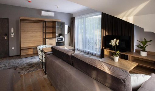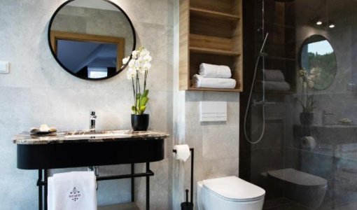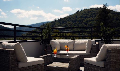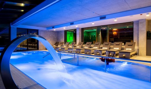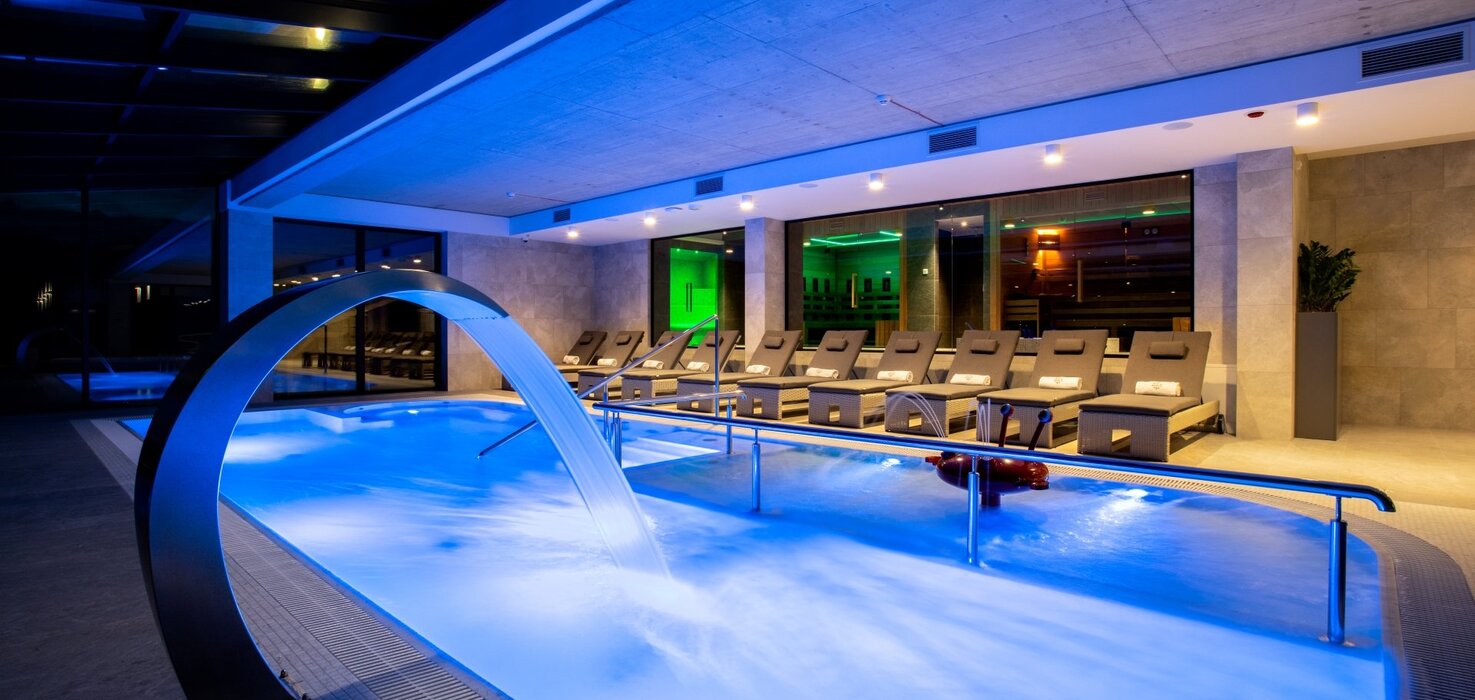 Strefa Wellness Balneo & SPA zaprasza do świata relaksu — z wewnętrznym basenem o panoramicznym widoku na górskie pasma i lasy, jacuzzi, kompleksem saun oraz grotą solną, które pozwalają odzyskać energię i wewnętrzną równowagę.