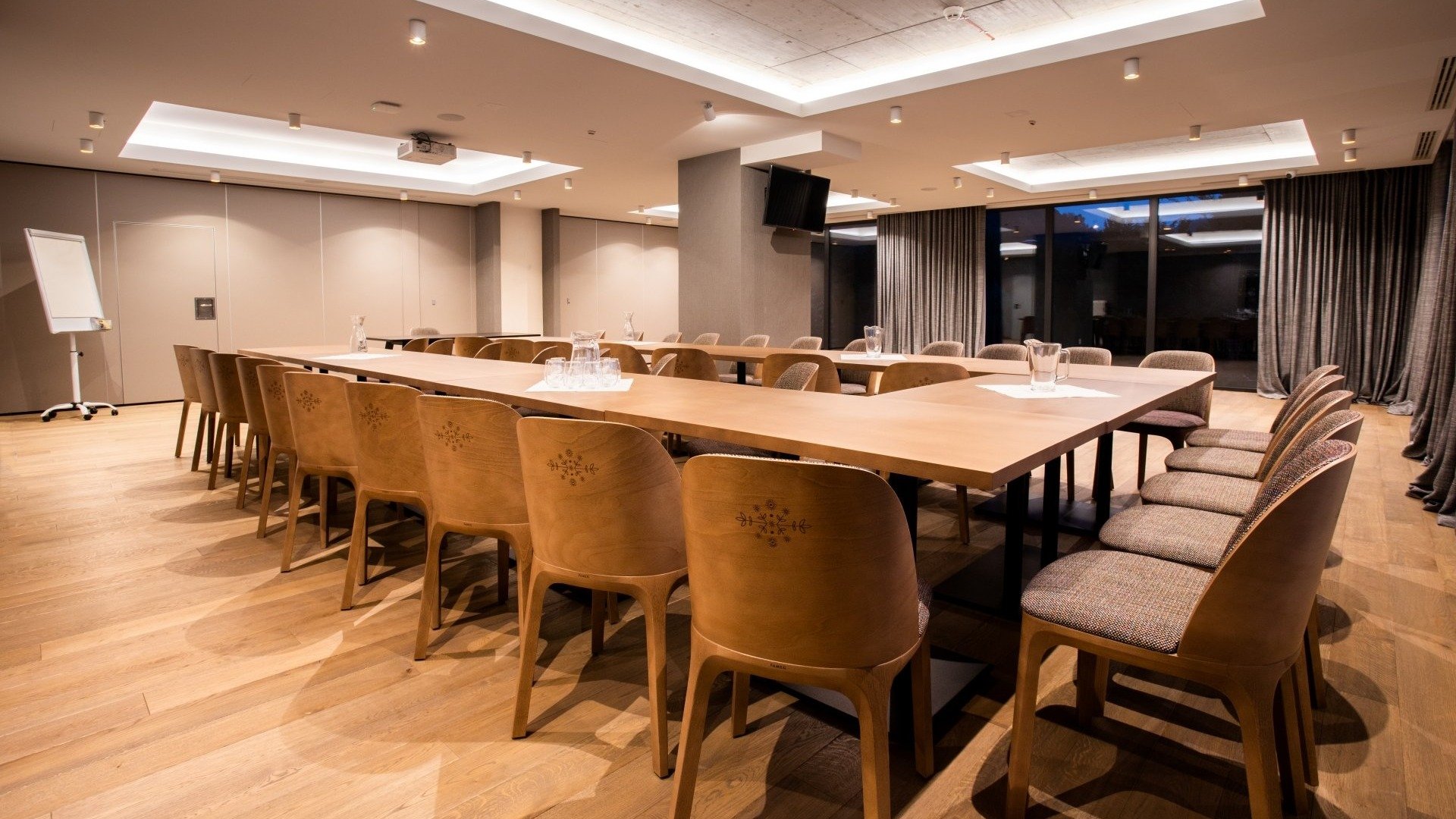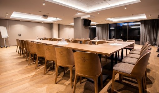 Hotel dysponuje także salą konferencyjną wyposażoną w nowoczesny sprzęt multimedialny, idealną do organizacji spotkań biznesowych i wydarzeń okolicznościowych.
