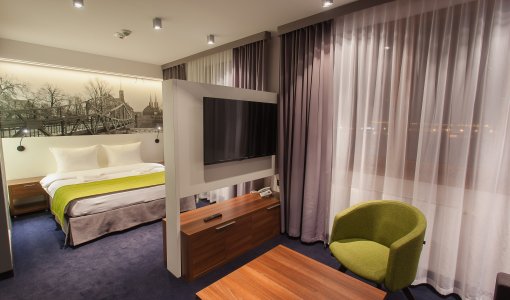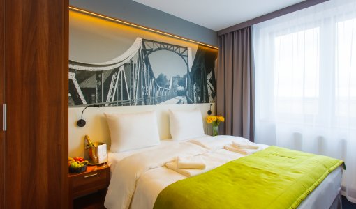 Terminal Hotel to nowoczesny, trzygwiazdkowy obiekt zaprojektowany dla Gości podróżujących prywatnie, służbowo oraz turystycznie. Widok na Autostradową Obwodnicę Wrocławia oraz lokalizacja w promieniu jedynie 2 km od Portu Lotniczego we Wrocławiu sprawia, iż Terminal Hotel stanowi doskonałe miejsce dla Gości ceniących sobie swobodę podróżowania. Hotel Terminal to pod wieloma względami wyjątkowe miejsce inspirowane wizerunkiem Wrocławia. W pokojach hotelowych, korytarzach czy w restauracji można znaleźć pięknie podświetlane zdjęcia takich miejsc jak Panorama Racławicka czy Most Grunwaldzki, które dają Gościom poczucie bycia w sercu miasta. Funkcjonalność w gustownym stylu oraz wysoka jakość materiałów gwarantują bezpieczeństwo i komfort pobytu naszych Gości. Z kolei wyraźna kolorystyka i zastosowanie ekologicznego oświetlenia LED sprawia wrażenie ciepła i estetyki. Do dyspozycji Gości jest profesjonalny i życzliwy personel, który zadba o beztroski wypoczynek i doskonały nastrój każdego dnia. Codziennie rano przygotowujemy świeże i pełnowartościowe śniadania w bogatej formie ciepłego i zimnego bufetu, które w połączeniu ze świeżo parzoną kawą lub zieloną herbatą sprawią, że rozpoczęty dzień nabierze właściwego rytmu. Dla naszych Gości Szef Kuchni opracował wspaniałe menu. Restauracja Rakietowa serwuje autorskie dania inspirowane kuchnią międzynarodową, jak i rodzime polskie potrawy w oparciu o produkty lokalne i sezonowe. Wyjątkowa atmosfera Restauracji Rakietowa sprawia, iż jest ona idealnym miejscem do celebrowania posiłku. W ramach noclegu Terminal Hotel Wrocław zapewnia bezpłatny parking dla Gości.